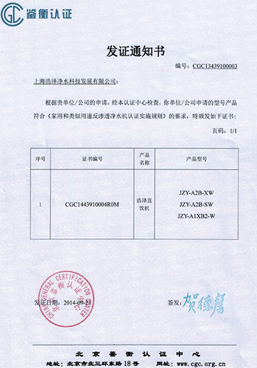 • 凈水器產品認證